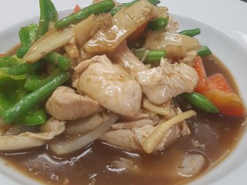 Served with your choice of either soup or ginger salad and a Thai spring roll. 1195 Spicy Prig Khing Green bean Bell peppers sautéed in Thai spicy Prig Khing. Online order now available directly from our restaurant.